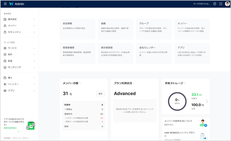 ※ フリープランでは、1企業(団体) 30人までのご利用が可能です。