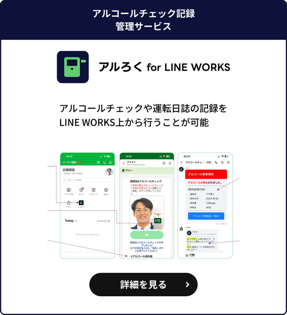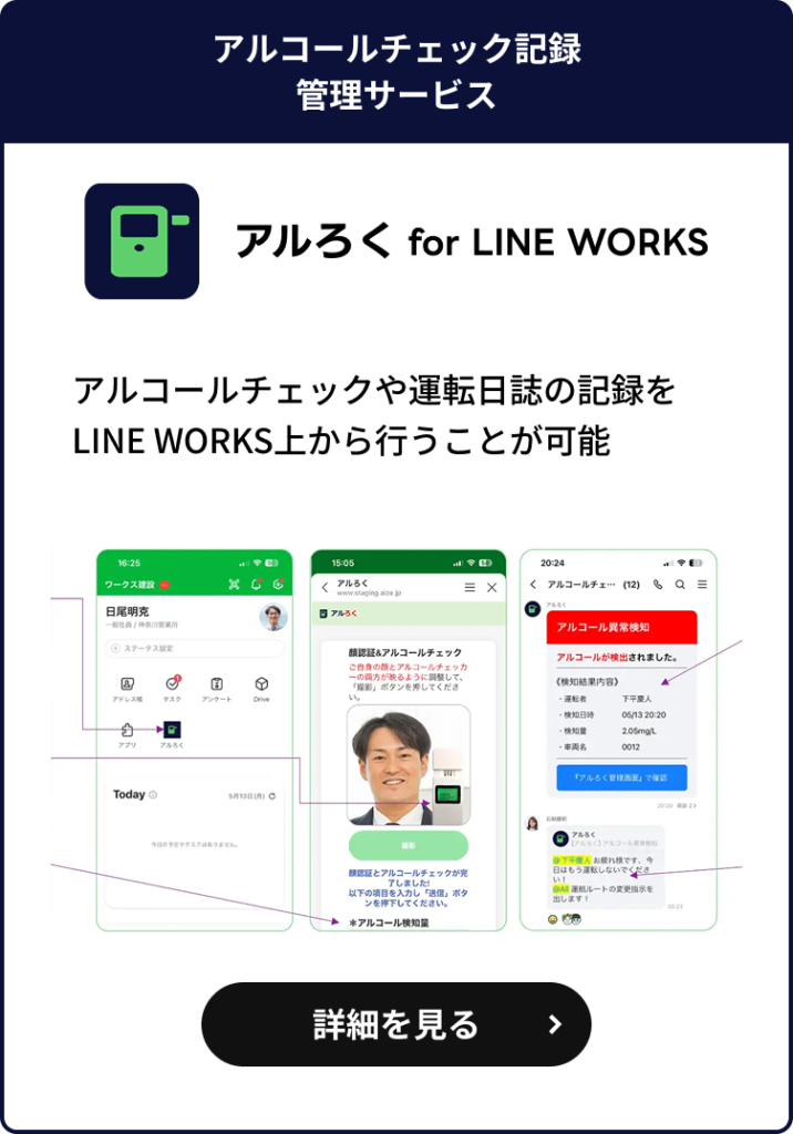 LINE WORKS上でアルコールチェックや運転日誌を記録・管理できるサービス