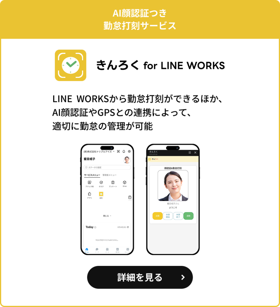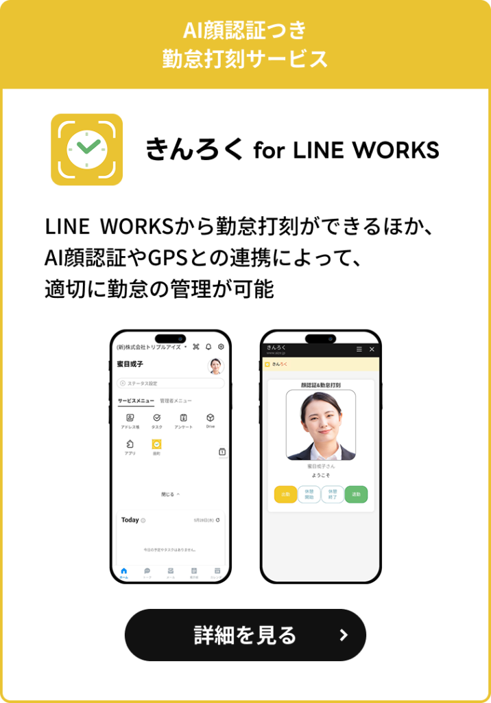 LINE WORKS上で勤怠打刻やGPS連携に対応したAI顔認証クラウド勤怠サービス